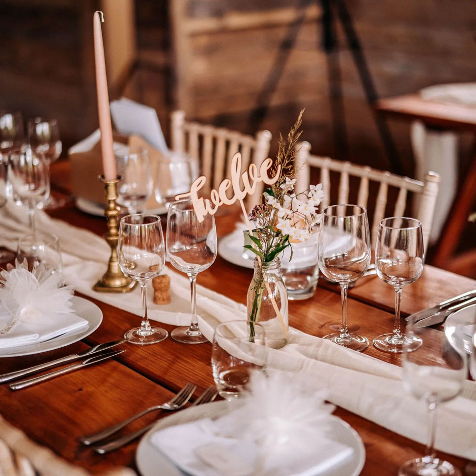 A selection of ways to display your table numbers or names, from rustic wooden table numbers, modern perspex or luxe brass and copper, we have a large range to suit your theme. You can provide your own table numbers cards or we can source them from our talented stationery friends to help finish the perfect look.